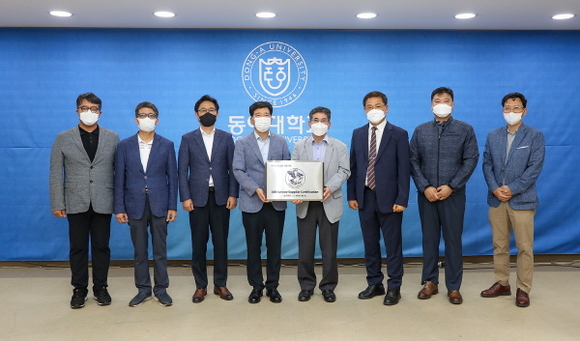 동아대는 ABS 승인 시험기관 지정에 따른 인증서 교부 및 현판식을 최근 개최했다고 9일 밝혔다. 지난 5일 대학 산학관에서 진행된 현판식에는 이해우 총장과 한재승 ABS 한국 대표, 김성재 산학협력단장, 박준홍 창업지원단장, 김시범 밸브센터장, 최정주 부센터장 등 동아대 관계자와 ABS 측 강창해 본부장, 인증 심사를 담당한 박정규 수석검사관 등이 참석했다.