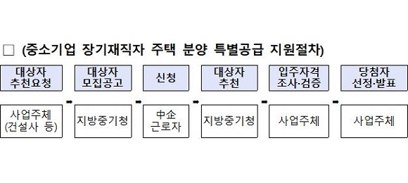 중소기업 장기근속자 주택 우선공급제는 ‘중소기업인력지원특별법’ 30조에 근거한 제도로 근무자의 주거안정을 통해 중소기업으로의 인력유입과 장기 재직 유도를 목적으로 시행한다. 제도는 지난 2004년부터 매년 운영되고 있다.