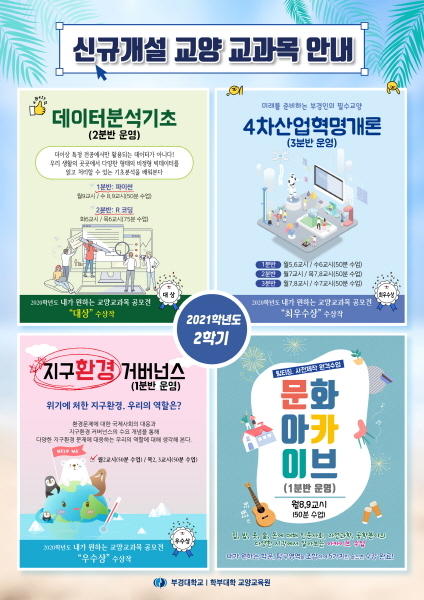 국립부경대학교는 학생들이 직접 설계, 제안한 교양과목을 오는 9월부터 시작되는 2학기에 실제로 신규 개설해 운영한다고 9일 밝혔다.