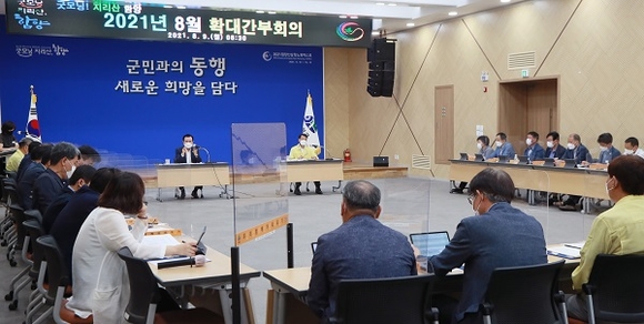 군은 9일 오전 서춘수 군수 주재로 간부회의를 열고 각 부서별 추진할 중요 현안사업에 대해 보고하고 원활한 사업 추진을 위한 각 부서의 협조를 이끌어 냈다.