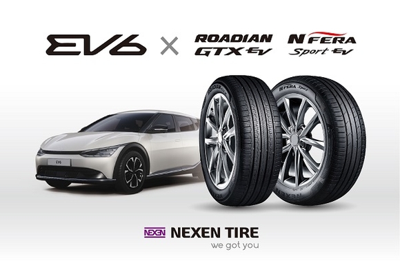 'EV6'에는 넥센타이어의 '로디안 GTX EV'와 '엔페라 스포츠 EV' 제품이 공급된다. '로디안 GTX EV'는 타이어의 안전성, 내구성, 저소음 등 전기차에 필요한 요구 성능들을 전부 만족시키는 올시즌 프리미엄 타이어다.