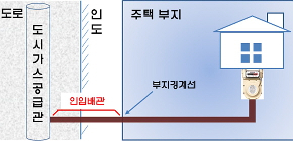 인입배관은 도시가스 공급관에서 주택부지 경계선까지 설치되는 배관으로 현재 설치공사 비용은 도시가스 사업자와 수요자가 50%씩 부담하고 있다.