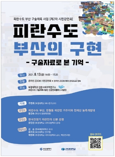 부산광역시와 국립부경대학교 피란수도 구술 채록 사업단이 오는 13일 오후 2시 ‘제2차 시민강연회’를 온라인으로 개최한다.