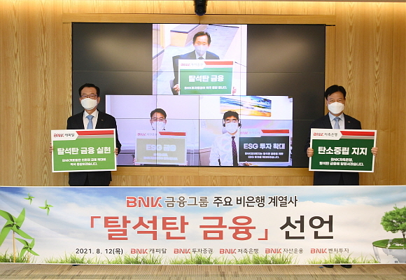 이날 BNK캐피탈, BNK투자증권, BNK저축은행, BNK자산운용, BNK벤처투자 5개 계열사가 탈석탄 금융 공동선언에 나섰다.