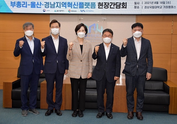 이날 간담회에는 유 부총리와 하병필 경남도지사 권한대행을 비롯해 조원경 울산시 경제부시장, 권순기 경상국립대 총장, 이은진 지역혁신플랫폼 총괄운영센터장 등이 참석해 지난해 사업 성과를 공유하고 울산까지 확대된 2기(`21.6.~`22.4.) 사업의 발전 방향을 논의했다.