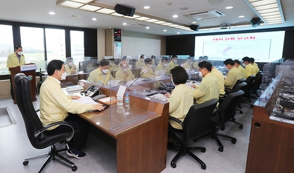 경남 창원시는 23일 재난상황실에서 전 실·과·소장 및 구청장이 참석한 가운데 태풍 대비 대처상황을 점검하기 위한 긴급대책 회의를 개최했다.