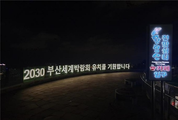 시에 따르면 이는 세계박람회 유치의 상징성을 강조하기 위한 것으로 향후 개최지 확정까지 계속 이어간다는 계획이다. 송출 메시지는 ‘2030 부산 세계박람회 유치를 기원합니다’다.