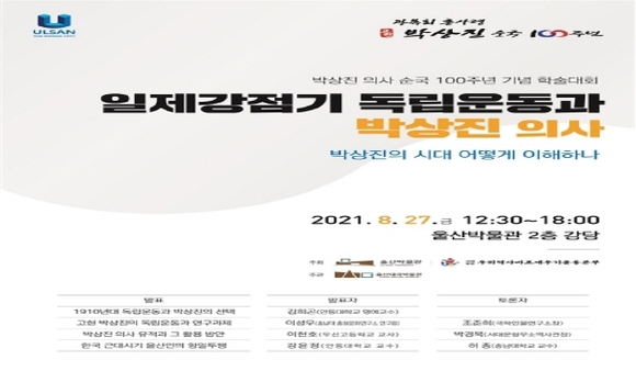 울산대곡박물관은 오는 8월 27일 오후 12시 30분 울산박물관 2층 강당에서 ‘일제강점기 독립운동과 박상진 의사’라는 주제로 ‘학술대회’를 개최한다.