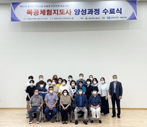 목공체험지도사 양성과정은 울주군으로부터 위탁교육기관으로 선정, 울주군민에게 다양한 취업필수교육의 기회를 제공하고 지역산업이 요구하는 산업인재 육성을 위해 2021년 ‘울주형 지역산업 맞춤형 전문인력 육성사업의 일환으로 개설됐다.