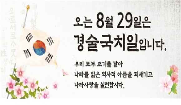‘경술국치일’은 일제가 대한제국의 통치권을 빼앗은 한·일 병합조약을 강제로 체결하고 공포한 1910년(경술년) 8월 29일을 일컫는 말이다.