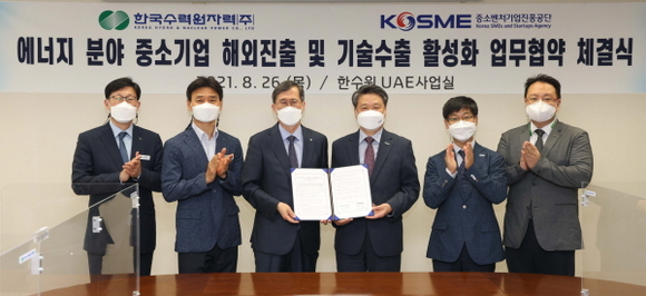 한국수력원자력(이하 한수원)이 26일 서울 대한상공회의소에서 중소벤처기업진흥공단(이하 중진공)과 ‘에너지 분야 중소기업 해외진출 및 기술수출 활성화’를 위한 업무협약을 체결했다.