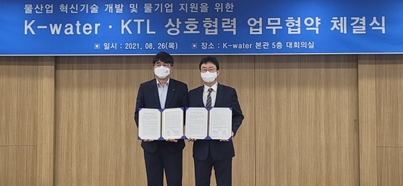 한국산업기술시험원(이하 KTL)은 한국수자원공사(이하 K-water)와 26일 오전 11시 대전광역시 대덕구 K-water 본사에서 ‘물산업 분야 중소·벤처기업의 혁신기술 사업화 지원’을 위한 업무협력 협약을 체결했다고 밝혔다.