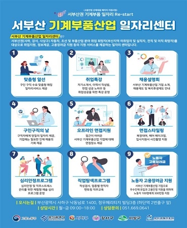 한편 시는 앞서 지난 6월 사업에 참여하는 강서구, 사하구, 사상구와 협력해 서부산권 부품산업 기업 5500여개사를 발굴해 홍보했다. 이어 ‘고용안정 선제대응 패키지 지원사업’의 원활한 추진을 위해 지난달부터 이달까지 서부산고용안정추진단과 서부산 기계부품산업 일자리센터를 개소했다.