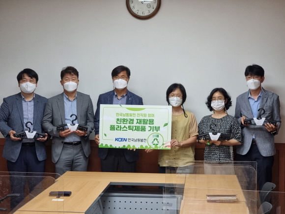 남동발전은 30일 직원들이 매칭그랜트에 참여해 조성된 기금으로 친환경 플라스틱 제품을 구입, 이를 경남 진주의 지역자활센터에 기부했다고 밝혔다.