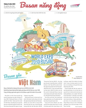 해당 특별판은 ▲부산과 베트남의 교류 역사, 현황 ▲부산시의 다문화 정책, 지원기관, 시설 소개 등 생활정보 ▲부산 거주 베트남인, 유학생, 민간단체의 부산 생활과 교류 이야기 ▲부산 관광명소 소개 등으로 구성된다.