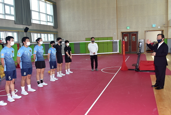 부산체고를 방문한 김 교육감은 학생선수들에 “한여름 무더위와 코로나19 사태에도 불구하고 자신과 싸우며 꿈을 향한 도전을 멈추지 않는 여러분이 정말 대견하고 자랑스럽다”며 “남은 기간, 컨디션을 잘 관리해 그간 갈고닦은 기량을 마음껏 펼쳐 달라”고 당부했다.