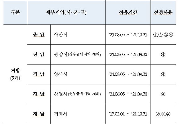 주택도시보증공사(HUG)가 제60차 미분양 관리지역으로 경남도 3곳, 전남도 1곳 등 총 5개 지역을 지정했다고 31일 발표했다.