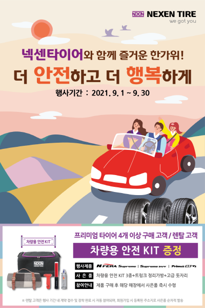 넥센타이어가 구매 고객을 대상으로 한가위 맞이 사은 이벤트를 실시한다고 1일 밝혔다.