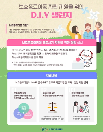먼저 이달부터 향후 3개월간 기부금 모금 플랫폼 ‘해피빈’에 보호종료 아동 지원 모금함을 개설해 전 국민을 대상으로 1000만원 모금을 목표로 펀딩을 진행한다. 이후 모금된 금액에 캠코의 기부금 1000만원을 더해 부산 거주 보호종료 아동을 후원할 예정이다.