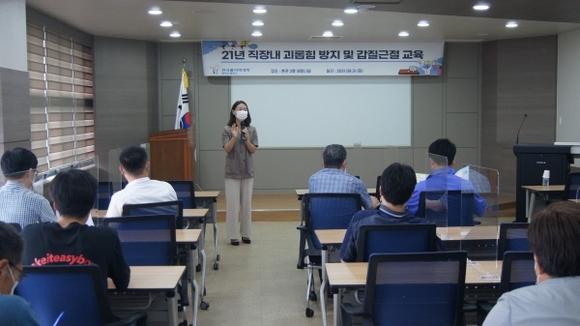 이윤미 파인교육개발원장을 초청해 진행한 이번 교육은 근로기준법 개정 내용, 임직원 행동강령 등 규정 교육과 직장내 괴롭힘 발생 시 피해자와 기관의 대처방안 등에 대해 진행됐다.