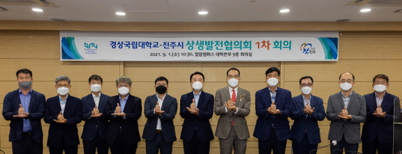경상국립대학교(GNU)와 진주시는 1일 오전 10시 30분 대학 칠암캠퍼스에서 ‘경상국립대학교-진주시 상생발전협의회 1차 회의’를 개최했다.