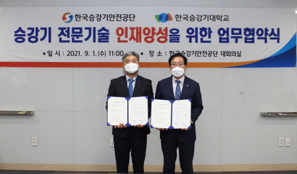 한국승강기안전공단은 승강기 이용자 안전 확보 및 승강기 산업 기술인력 양성과 지역 사회발전 등을 위해 1일 한국승강기대학교와 업무협약을 체결했다.