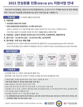 이후 부산시경찰청의 범죄예방진단팀의 방범시설 설치 컨설팅을 거쳐 최종 지원 여부를 결정하게 된다.