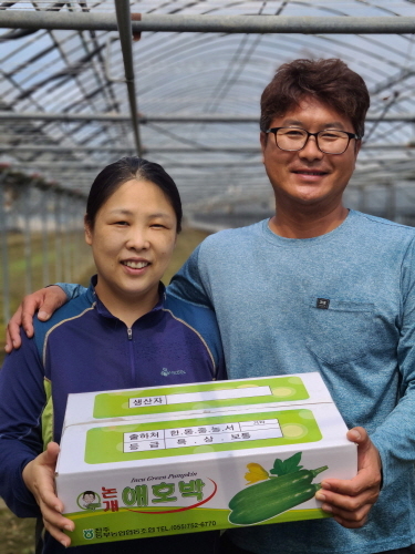 진주동부농협 조합원인 구본진(43)·오현정(43) 부부(행복농원)는 11년차 귀농인으로 8,003㎡ 규모의 시설하우스에서 GAP인증 애호박을 재배하고 있다.