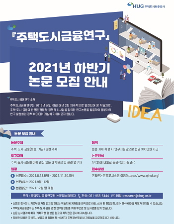 주택도시보증공사(HUG)가 올해 하반기 ‘주택도시금융연구’ 학술지에 게재할 우수 논문을 공개 모집(공모)한다고 3일 공고했다.