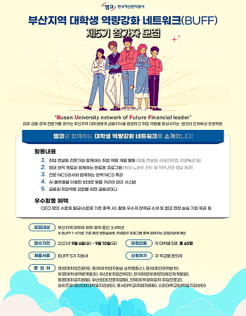 한국자산관리공사(캠코)가 오늘(6일)부터 오는 10일까지 5일간 ‘부산지역 대학생 역량 강화 네트워크 5기’에 참가할 대학생을 모집한다고 공고했다.