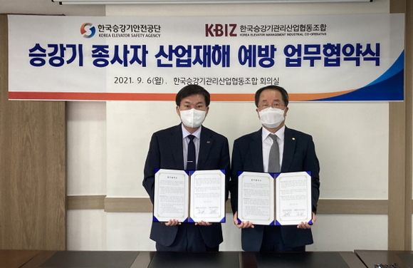 이날 협약식에는 공단 한익권 안전관리이사와 승강기관리산업협동조합 김기동 이사장이 참여해 서명했다. 주요 내용은 공단이 보유한 안전보건정보를 협동조합에 제공하면 협동조합은 회원사들과 공유하고, 현장 안전점검 및 안전 위험요소 발굴·제거와 안전보건 교육자료 공동 개발 등이다.