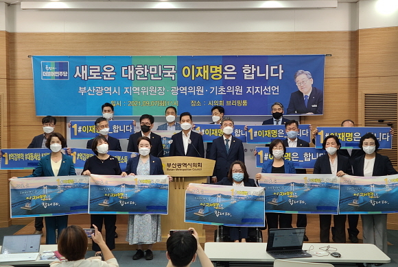 더불어민주당 소속 부산시의원 20명과 부산 기초의원 46명 등 일동이 7일 오전 11시 부산시의회 브리핑실에서 기자회견을 열고 이재명 대선 후보를 공식 지지하고 나섰다.
