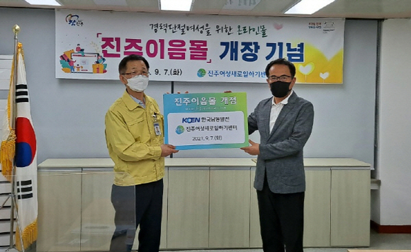 한국남동발전은 7일 진주여성새로일하기센터에서 경력단절여성의 일자리 창출을 위한 코로나19 대응 언택트형 온라인 쇼핑몰 ‘진주이음몰’을 개장했다.
