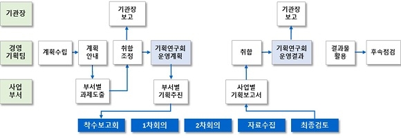 부산테크노파크는 국가 연구개발 사업의 전략적 유치를 위해 기관에서 산발적으로 운영하던 기획과제를 통합 운영할 프로세스를 확립하고 ‘전략산업 기획연구회’를 설립, 운영하고 있다. 이 연구회를 통해 국가 연구개발 사업의 부처별 추진 동향을 파악하고 부산 기업, 대학, 연구기관 등 자원과 함께 중장기 사업을 기획해 미래 먹거리 사업을 발굴, 유치하고 있다.