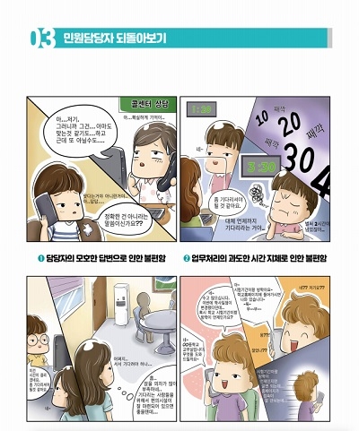 특히 민원 담당자 되돌아보기, 방문민원 이야기, 전화민원 이야기를 웹툰 형식의 만화로 보여줌으로써 업무 담당자의 주의를 환기시켜 줄 뿐만 아니라 어려운 민원의 대응 방법을 한눈에 쉽게 전한다.