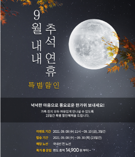에어부산 관계자는 “고향이나 친지 방문이 필요한 이용객들은 에어부산이 준비한 이번 특가 항공권과 항공편을 활용해 더 여유롭고 유연하게 이동하길 추천한다”고 전했다.