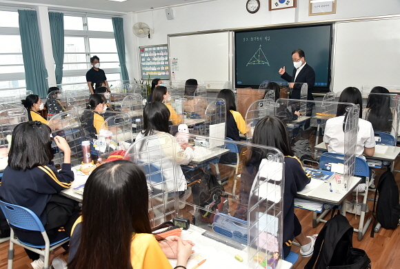 부산지역의 코로나19 유행 상황이 감소세로 접어드는 가운데 김석준 부산시교육감이 지난 7일 서구, 중구, 동구 소재 초·중학교를 잇따라 방문해 방역 점검에 나섰다. 시교육청에 따르면 이날 김석준 시교육감은 남부민초등학교, 경남중학교(이하 서구), 남성초등학교(중구), 부산동여자중학교(동구)를 차례로 방문해 학사 일정과 방역 상황을 점검했다. (사진=부산시교육청 제공)