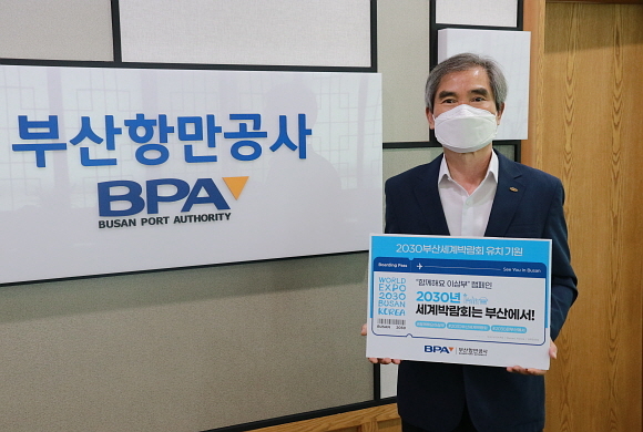 부산항만공사(BPA)는 9일 남기찬 사장이 ‘2030 세계박람회 부산’ 유치를 위한 대국민 릴레이 캠페인 ‘함께해요 이삼부(2030 세계박람회는 부산에서)’에 동참했다고 밝혔다.
