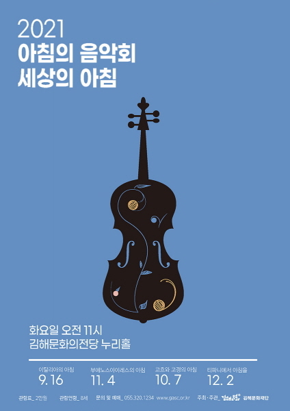 김해문화재단 김해문화의전당 대표 레퍼토리 시리즈 ‘아침의 음악회’가 돌아온다. 오는 16일부터 12월 2일까지 ‘세상의 아침’을 주제로 매월 1회씩 관객을 찾아간다.
