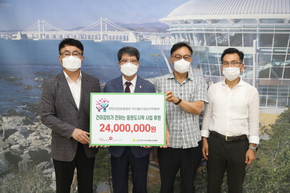 국민건강보험공단 부산울산경남지역본부는 9일 지역본부에서 한국지역자활센터협회 부산지부, 부산노숙인시설협회와 2400만원 상당의 응원도시락 후원 기금 전달식을 진행했다.