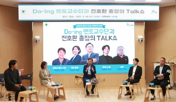 이번 토크쇼는 2022년도부터 시작될 두잉 관련 교육방법에 대한 지혜를 얻기 위한 자리로, 전호환 총장이 직접 사회를 보면서 진행했다.
