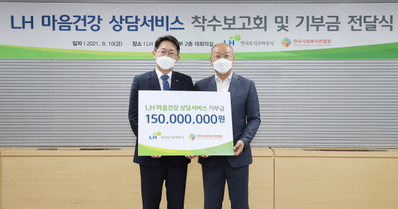 LH가 전달한 기부금 1억 5000만원은 한국사회복지관협회가 전국 13개 LH 임대단지 입주민 130명을 대상으로 실시하는 ‘마음건강 상담 서비스’에 활용된다.