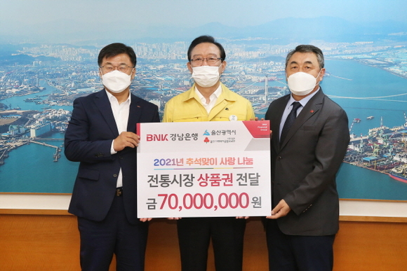경남은행이 기탁한 7000만원 상당 전통시장상품권은 울산사회복지공동모금회를 통해 울산광역시가 추천한 소외계층 가정 1400세대에 나눠 지원된다.