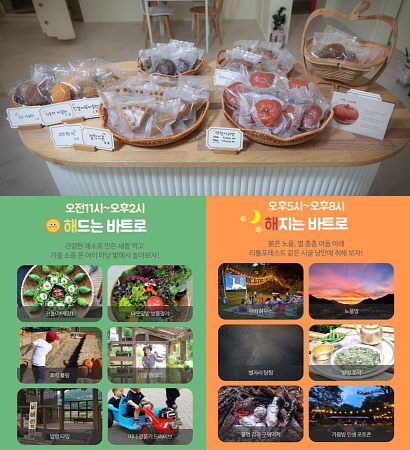 채식주의자용 베이커리 ‘에이플’ 제품(위)과 밭멍 농촌체험 안내문 (사진=한국남부발전 제공)