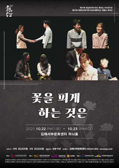 김해문화재단 김해서부문화센터는 오는 10월 22일과 23일 김해서부문화센터 하늬홀에서 특별하고 색다른 연극 ‘꽃을 피게 하는 것은’을 선보인다고 13일 밝혔다.