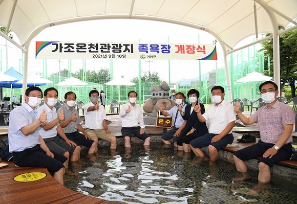 경남 거창군은 지난 10일 구인모 군수를 비롯해 김일수·강철우 경남도의원, 김종두 군의회 의장, 군의원, 가조면 기관단체장 등 40여 명이 참석한 가운데 '가조온천관광지 족욕장' 개장식을 가졌다.