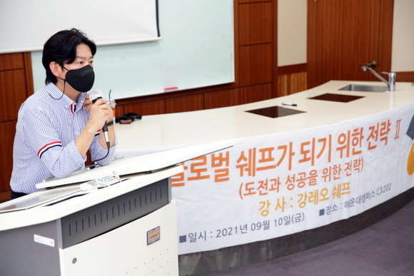 영산대학교 조리예술학부 서양조리전공이 지난 10일 ‘글로벌 셰프 전략’ 릴레이특강 두 번째 강연자로 스타 셰프인 강레오 셰프를 초청해 강연을 진행했다.