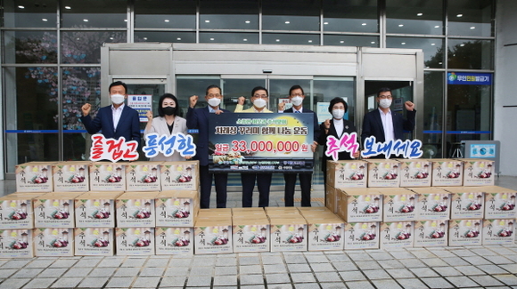 이날 전달식에는 농협창원시지부, ㈜무학, ㈜넥스틸, ㈜신우중공업, 이원정밀이 참여해 추석 차례상 꾸러미 405박스를 창원시에 전달했다. 이번 나눔 운동은 경남도내 18개 농협 시군지부에서 동시에 실시했으며 관내 기업체 및 기관, 단체 등 60개소가 기부에 동참했다.