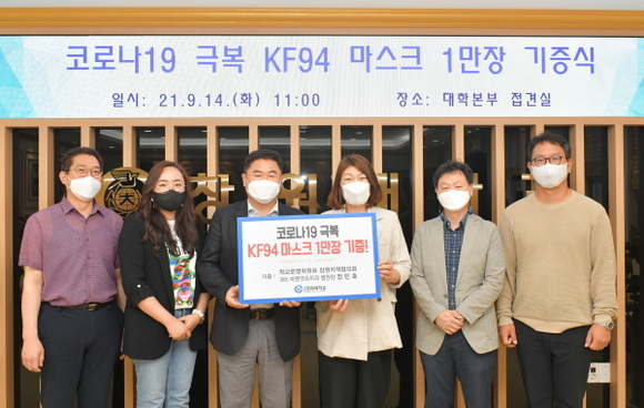 창원대학교는 14일 학교운영위원회 창원지역협의회와 365바른약속치과 정민호 원장이 창원대 학생들과 구성원을 위해 써 달라며 KF94 방역마스크 1만 장을 대학에 기증했다고 밝혔다.