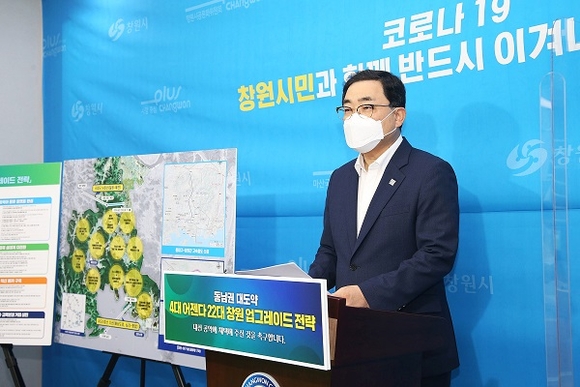 허성무 창원시장은 14일 오후 시청 프레스센터에서 20대 대선 공약화에 초점을 맞춘 '동남권 대도약 4대 어젠다와 22대 창원 업그레이드 전략'을 발표했다.